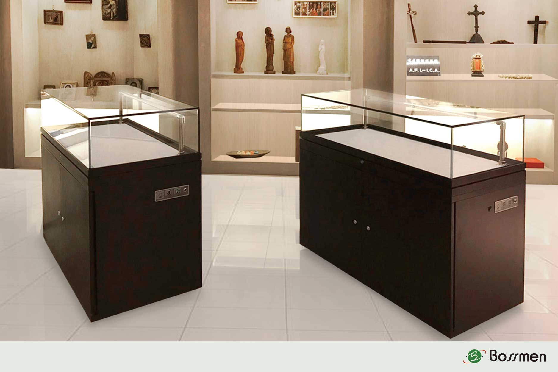 - BOSSMEN Flip-Top Display Cabinet: Combines security and convenience to offer the best display and protection for your exhibits.
