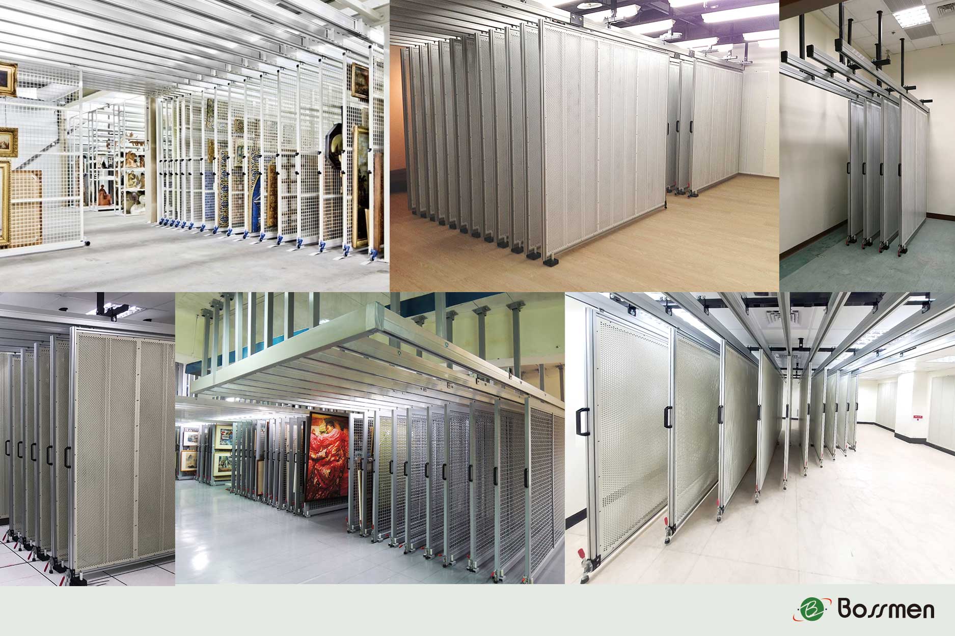 The Trackless Suspended Art Rack is designed to protect sensitive materials, electronics, and instruments from moisture damage. BOSSMEN integrates advanced humidity control systems to maintain stable RH levels, ensuring reliability in manufacturing, laboratories, and research facilities.