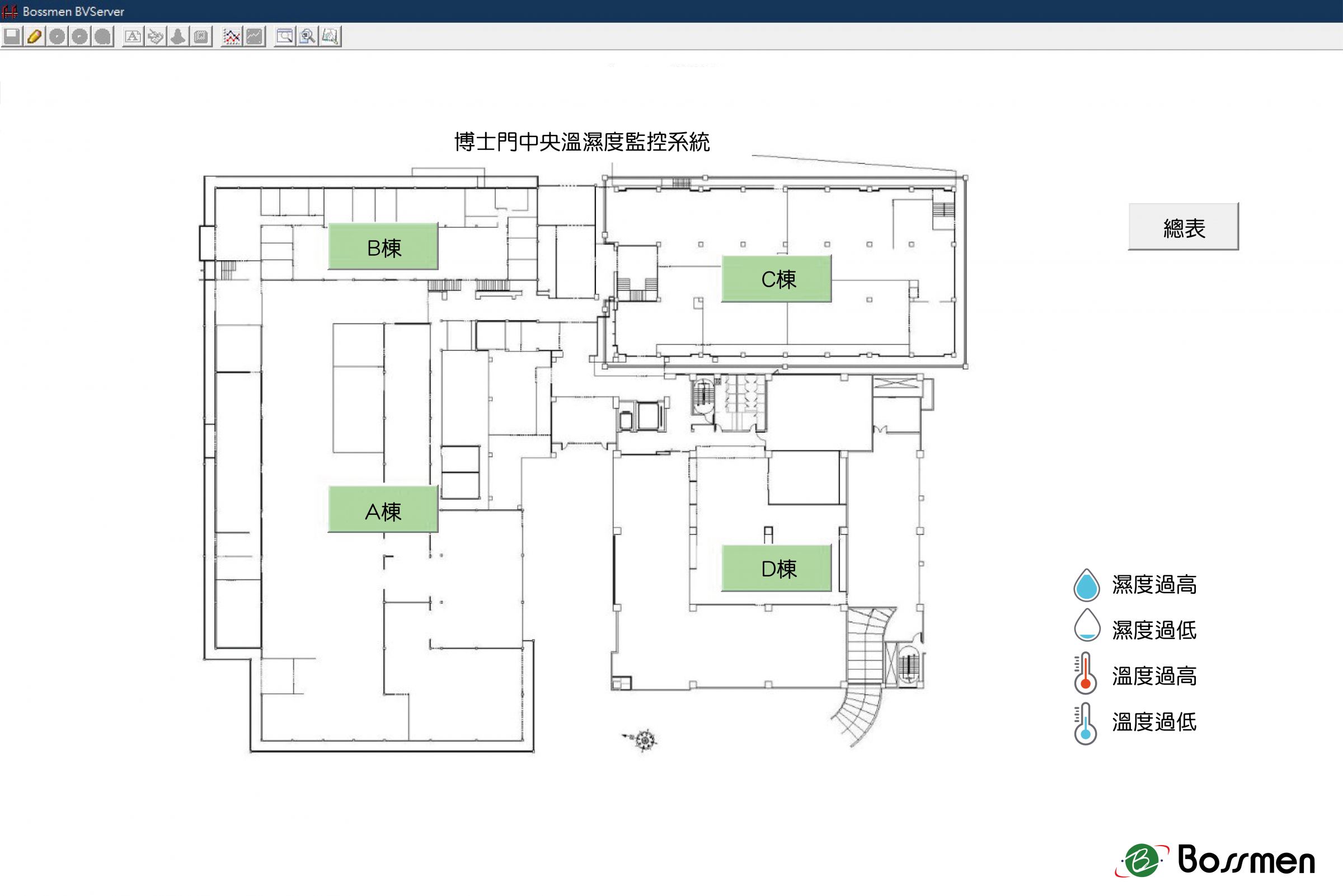 - 图层监控与多设备同时监控:系统支援图层监控模式,可以同时监控多台设备,并且根据不同图层显示各侦测点的温湿度值,轻松了解整体环境状况。