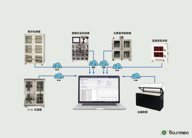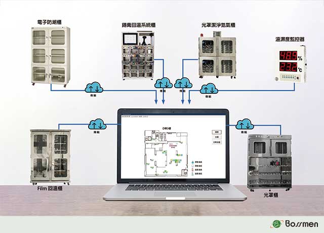 博士門IoT物聯網溫濕度監控系統能夠一次性監控全廠的所有溫濕度設備,論是氮氣櫃、防潮櫃、烘烤箱或光罩櫃,所有數據都會即時回饋至中控部門,配備記錄與警報系統可幫助使用者隨時掌握設備運行狀態,即時發現異常並迅速解決問題,避免生產中斷或產品質量受損。